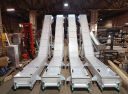 25.04.2025 Компании Полимир из г. Казань отгружена партия из четырех конвейеров для перемещения пластмассовых крышек. Конвейеры Z-образной формы. Борта: 200 мм – на прямой части, 100 мм – на наклонной части. Материал – сталь 3, порошковая покраска. Сверху конвейер закрыт монолитным поликарбонатом, кожух выполнен со смотровыми окнами. Материал рамы, опор - Сталь 3, порошковая покраска. Материал крепежа - Оцинкованная сталь Высота входа (от пола до несущей поверхности ленты), мм. - 200 Высота выхода (от пола до несущей нижней кромки разгрузочной воронки), мм. - 2000. На выходе...